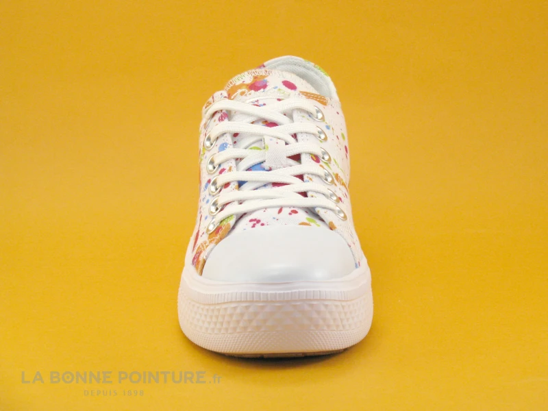 Cette belle basket basse à semelle épaisse Dockers 50VL201 est en toile blanche parsemée de petites taches multicolores.