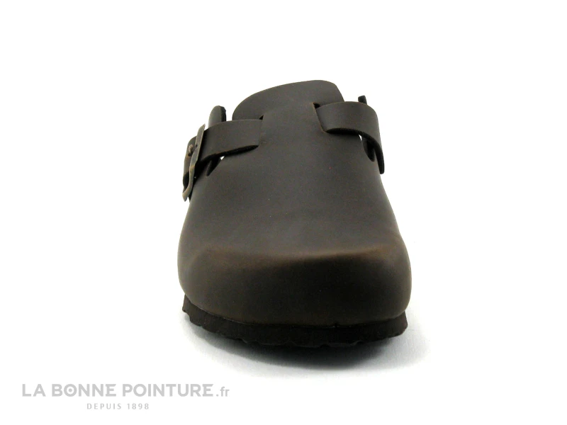 Cette paire de sabots petit prix Homme Moran’s Judo est en simili cuir marron foncĂ©, avec de lĂ©gères nuances.