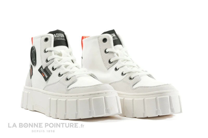 On suit la tendance des baskets plateforme avec ces superbes sneakers montantes blanches Palladium Pallatower Hi !